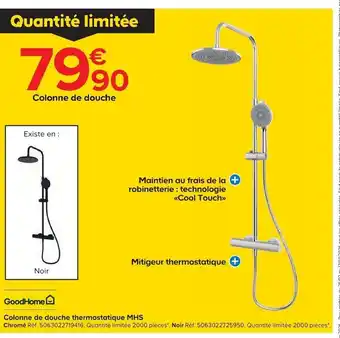Actuellement en offre chez Castorama : GOODHOME Colonne de douche thermostatique MHS ✅ Valable du 25-02 au 17-03.