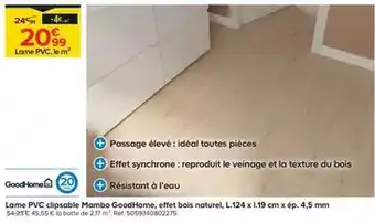 Goodhome - lame pvc clipsable mambo, effet bois naturel, l. 124 x 19 cm x ep. 4,5 cm : offres et promos Castorama à découvrir