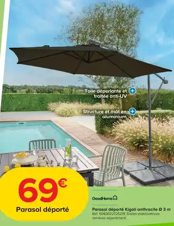 Actuellement en offre chez Castorama : Goodhome parasol déporté kigali anthracite ø 3 m ✅ Valable du 25-02 au 17-03.