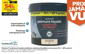Offre Goodhome peinture(d) façade conditions extrêmes ton pierre 10 l + 20% gratuit chez Castorama