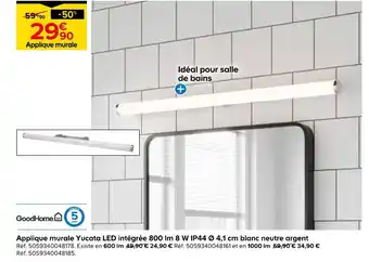 Actuellement en offre chez Castorama : Goodhomw applique murale yucata led intégrée 800 lm 8 w ip44 ø 4,1 cm ✅ Valable du 15-04 au 5-05.