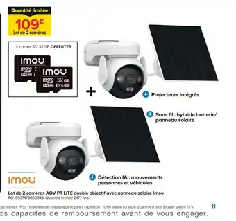 Offre Lot de 2 caméras AOV PT LITE double objectif avec panneau solaire Imou chez Castorama