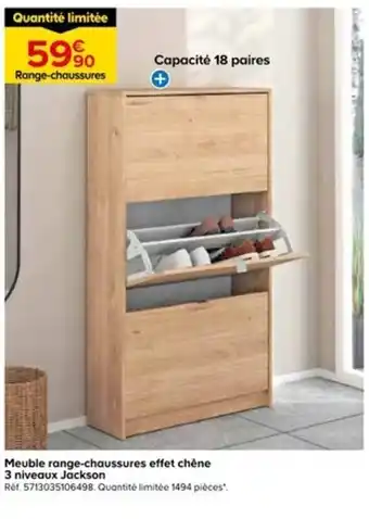 L'offre est disponible dans plusieurs magasins, vérifiez tous les produits pour obtenir le Meuble range-chaussures effet chêne le moins cher. Si vous souhaitez savoir si l'article est en vente avec une plus grosse remise dans un autre magasin, consultez la catégorie 'Bricolage'. Ces offres pourraient aussi vous intéresser : Meuble range-chaussures effet chêne 3 niveaux jackson, MEUBLE RANGE-CHAUSSURES & Meuble vasque effet chêne naturel arty.