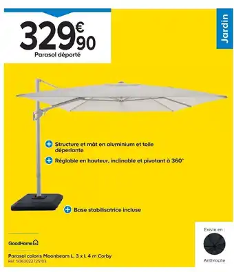 Actuellement en offre chez Castorama : Parasol coloris Moonbeam ✅ Valable du 25-02 au 17-03.