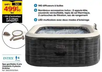 L'offre est disponible dans plusieurs magasins, vérifiez tous les produits pour obtenir le Spa + Kit d'entretien et 2 sièges le moins cher. Si vous souhaitez savoir si l'article est en vente avec une plus grosse remise dans un autre magasin, consultez la catégorie 'Bricolage'. Ces offres pourraient aussi vous intéresser : KIT ENTRETIEN POUR SPA INTEX, Produit d'entretien pour évier en résine & SPA GONFLABLE PURE SPA GALAXIE INTEX.
