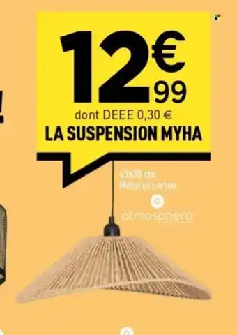 En plus de l'offre ATMOSPHERA La suspension myha, Centrakor propose une large gamme de produits. Consultez le Catalogue Centrakor hebdomadaire pour découvrir les meilleures offres et promotions. En plus de ATMOSPHERA La suspension myha, il y a aussi : ATMOSPHERA La suspension flave, ATMOSPHERA La suspension ida & ATMOSPHERA La suspension zely.