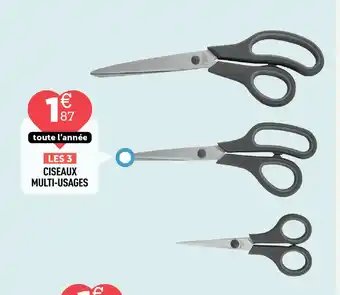 En plus de l'offre Ciseaux multi-usages, Centrakor propose une large gamme de produits. Consultez le Catalogue Centrakor hebdomadaire pour découvrir les meilleures offres et promotions. En plus de Ciseaux multi-usages, il y a aussi : Spray multi-usages, Brosse multi-usages & BACHE MULTI USAGES 2X3 M.
