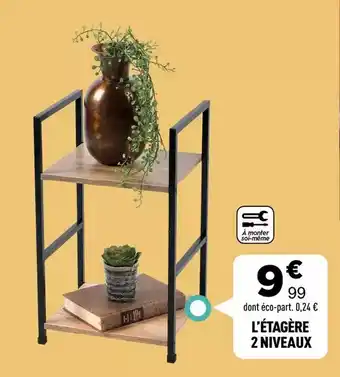 L'offre est disponible dans plusieurs magasins, vérifiez tous les produits pour obtenir le L'etagère 2 niveaux le moins cher. Si vous souhaitez savoir si l'article est en vente avec une plus grosse remise dans un autre magasin, consultez la catégorie 'Jardineries et Animaleries'. Ces offres pourraient aussi vous intéresser : L'etagère 3 niveaux, L'etagere 4 niveaux & L'etagère 9 cases.