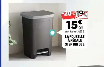 La poubelle à pédale step bin bénéficie actuellement d'une réduction chez Centrakor. Vous trouverez ici toutes les infos utiles sur les prix, la durée de validité et les conditions de l’offre. Pensez à consulter aussi d'autres offres et promotions similaires pour La poubelle à pédale step bin afin d’acheter toujours au bon prix. La promo La poubelle à pédale step bin est valable du 12-01-2026 au 25-01-2026. Offre terminée ? Pas de souci. D'autres offres sur ces produits sont peut-être déjà disponibles. Vous pouvez suivre cette catégorie de produits pour rester informé en cas de nouvelle promotion La poubelle à pédale step bin chez Centrakor. En comparant les offres, vous êtes sûr d’acheter au prix le plus bas possible.Questions fréquemment posées au sujet de La poubelle à pédale step bin