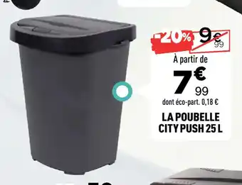 L'offre est disponible dans plusieurs magasins, vérifiez tous les produits pour obtenir le La poubelle city push le moins cher. Si vous souhaitez savoir si l'article est en vente avec une plus grosse remise dans un autre magasin, consultez la catégorie 'Jardineries et Animaleries'. Ces offres pourraient aussi vous intéresser : La poubelle city push 25 l, La poubelle city push & La tour city 4 tiroirs.