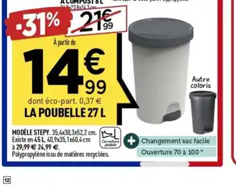 L'offre est disponible dans plusieurs magasins, vérifiez tous les produits pour obtenir le La poubelle le moins cher. Si vous souhaitez savoir si l'article est en vente avec une plus grosse remise dans un autre magasin, consultez la catégorie 'Jardineries et Animaleries'. Ces offres pourraient aussi vous intéresser : La poubelle, La poubelle & La poubelle stepy.