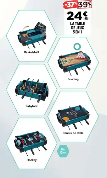En plus de l'offre LA TABLE DE JEUX 5 EN 1, Centrakor propose une large gamme de produits. Consultez le Catalogue Centrakor hebdomadaire pour découvrir les meilleures offres et promotions. En plus de LA TABLE DE JEUX 5 EN 1, il y a aussi : Table de jeux deami-power, Step2 table de jeux d'eau pour enfant & LA MAISON DE JEUX.