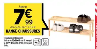 L'offre est disponible dans plusieurs magasins, vérifiez tous les produits pour obtenir le Range-chaussures le moins cher. Si vous souhaitez savoir si l'article est en vente avec une plus grosse remise dans un autre magasin, consultez la catégorie 'Jardineries et Animaleries'. Ces offres pourraient aussi vous intéresser : Le range- chaussures, Range chaussures KO & Vestiaire range chaussures.