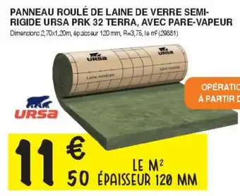 Panneau roulé de laine de verre semi- rigide ursa prk 32 terra avec pare-vapeur offres et promotions en ligne chez Chretien Matériaux