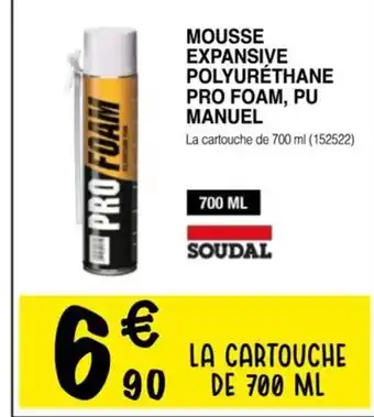 SOUDAL Mousse expansive polyurethane pro foam, pu manuel 700 ml