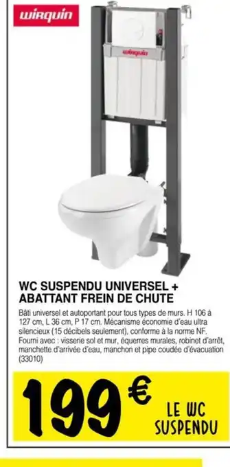 Quand Wc suspendu universel + abattant frein de chute sera-t-elle en promotion ? Ou encore : "Est-ce que Wc suspendu universel + abattant frein de chute sera en promotion la semaine prochaine ?" C’est une question fréquente. Beaucoup de consommateurs établissent leur liste de courses à l’avance. Pour cette raison, nous mettons en ligne les informations sur les promos à venir dès qu’elles sont connues. Cela vous permet de planifier vos achats et de faire de bonnes affaires. Consultez régulièrement notre site pour savoir si une nouvelle promo sur Wc suspendu universel + abattant frein de chute arrive bientôt chez Chretien Matériaux.Questions fréquemment posées au sujet de Wc suspendu universel + abattant frein de chute