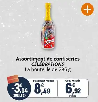 L'offre est disponible dans plusieurs magasins, vérifiez tous les produits pour obtenir le Assortiment de confiseries célébrations le moins cher. Si vous souhaitez savoir si l'article est en vente avec une plus grosse remise dans un autre magasin, consultez la catégorie 'Supermarché'. Ces offres pourraient aussi vous intéresser : Celebrations, CÉLÉBRATIONS Assortiment de bonbons au chocolat et biscuits bouteille & CÉLÉBRATIONS Bouteille.