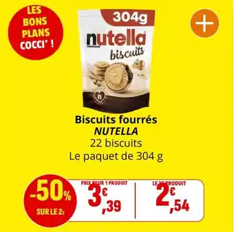 Actuellement en offre chez Coccimarket : Biscuits fourrés nutella ✅ Valable du 2-01 au 11-01.