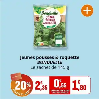 Actuellement en offre chez Coccimarket : Jeunes pousses & roquette bonduelle ✅ Valable du 22-04 au 3-05.