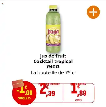Actuellement en offre chez Coccimarket : Jus de fruit cocktail tropical pago ✅ Valable du 11-02 au 22-02.