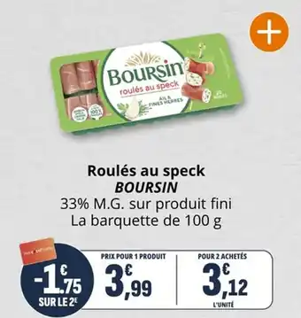 En plus de l'offre Roulés au speck boursin, Coccimarket propose une large gamme de produits. Consultez le Catalogue Coccimarket hebdomadaire pour découvrir les meilleures offres et promotions. En plus de Roulés au speck boursin, il y a aussi : SUR TOUT BOURSIN, Speck montorsi & Montorsi speck.