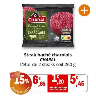 En plus de l'offre Steak haché charolais charal, Coccimarket propose une large gamme de produits. Consultez le Catalogue Coccimarket hebdomadaire pour découvrir les meilleures offres et promotions. En plus de Steak haché charolais charal, il y a aussi : Steak haché de cheval, Charal haché vrac pur bœuf 5% m.g. charal & Steak haché l'extra tendre surgelé.