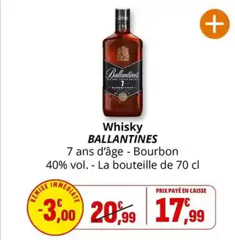 En plus de l'offre Ballantine's - whisky, Coccinelle Express propose une large gamme de produits. Consultez le Catalogue Coccinelle Express hebdomadaire pour découvrir les meilleures offres et promotions. En plus de Ballantine's - whisky, il y a aussi : BALLANTINE'S 7 Blended Scotch Whisky, Ballantine's - blended scotch whisky & Ballantine's blended scotch whisky.