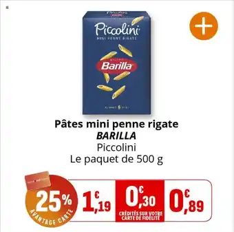 Actuellement en offre chez Coccinelle Express : BARILLA Pâtes mini penne rigate ✅ Valable du 22-04 au 3-05.