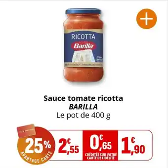 Actuellement en offre chez Coccinelle Express : BARILLA Sauce tomate ricotta ✅ Valable du 22-04 au 3-05.