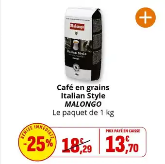 Café en grains italian style malongo offres et promotions en ligne chez Coccinelle Express