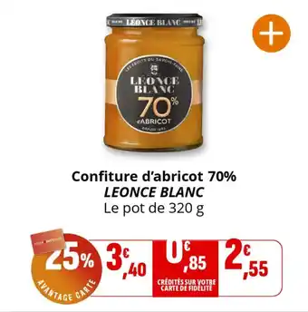 Actuellement en offre chez Coccinelle Express : Confiture d'abricot 70% leonce blanc ✅ Valable du 14-01 au 25-01.