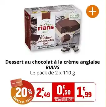 Dessert au chocolat à la crème anglaise rians : offres et promos Coccinelle Express à découvrir