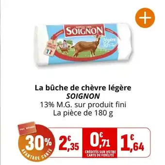Actuellement en offre chez Coccinelle Express : La bûche de chèvre légère soignon ✅ Valable du 2-01 au 11-01.