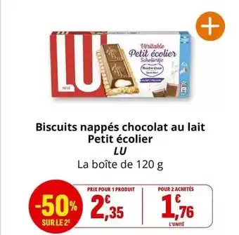 Actuellement en offre chez Coccinelle Express : Lu - biscuits nappés chocolat au lait petit écolier ✅ Valable du 11-02 au 22-02.