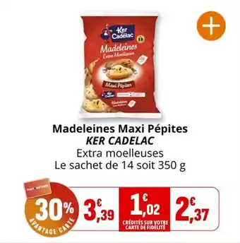 Actuellement en offre chez Coccinelle Express : Madeleines maxi pépites ker cadelac ✅ Valable du 2-01 au 11-01.