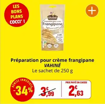 Actuellement en offre chez Coccinelle Express : Préparation pour crème frangipane vahiné ✅ Valable du 2-01 au 11-01.
