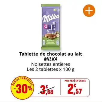 Offre Tablette de chocolat au lait milka chez Coccinelle Express