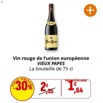 Actuellement en offre chez Coccinelle Express : Vin rouge de l'union européenne vieux papes ✅ Valable du 14-01 au 25-01.