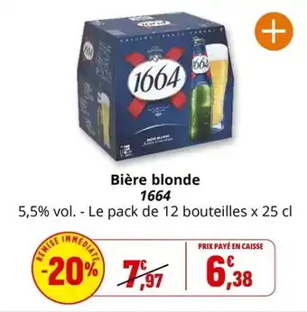 Actuellement en offre chez Coccinelle Supermarché : 1664 - bière blonde ✅ Valable du 11-02 au 22-02.