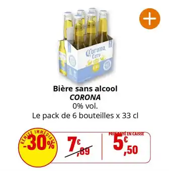 Actuellement en offre chez Coccinelle Supermarché : Bière sans alcool corona ✅ Valable du 28-01 au 8-02.