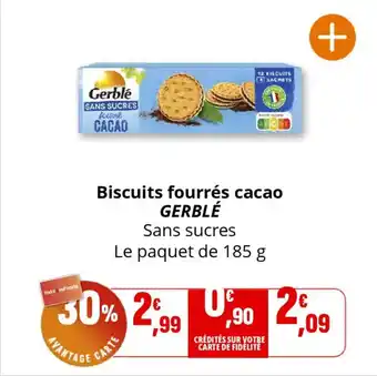 Actuellement en offre chez Coccinelle Supermarché : Biscuits fourrés cacao gerblé ✅ Valable du 2-01 au 11-01.