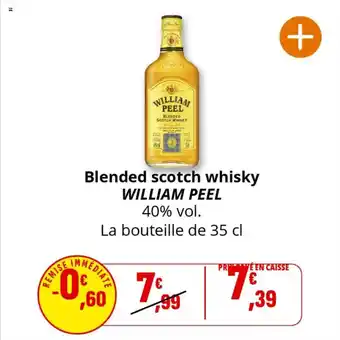 Actuellement en offre chez Coccinelle Supermarché : Blended scotch whisky william peel ✅ Valable du 28-01 au 8-02.