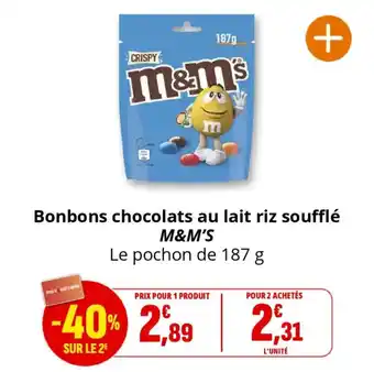 Offre Bonbons chocolats au lait riz soufflé m&m's chez Coccinelle Supermarché