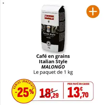 Café en grains italian style malongo : offres et promos Coccinelle Supermarché à découvrir