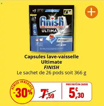 Actuellement en offre chez Coccinelle Supermarché : Capsules lave-vaisselle ultimate finish ✅ Valable du 25-02 au 8-03.