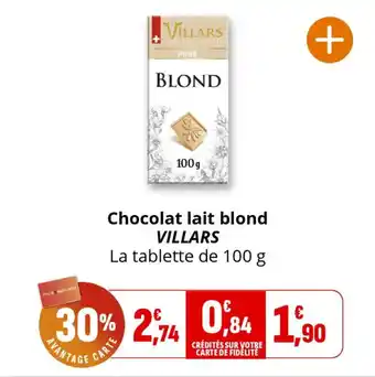 Actuellement en offre chez Coccinelle Supermarché : Chocolat lait blond villars ✅ Valable du 11-03 au 22-03.