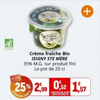 Offre Crème fraîche bio isigny ste mère chez Coccinelle Supermarché