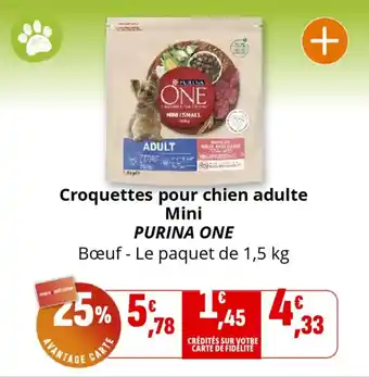 Actuellement en offre chez Coccinelle Supermarché : Croquettes pour chien adulte mini purina one ✅ Valable du 2-01 au 11-01.