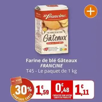 Actuellement en offre chez Coccinelle Supermarché : Francine - farine de blé gâteaux ✅ Valable du 11-02 au 22-02.