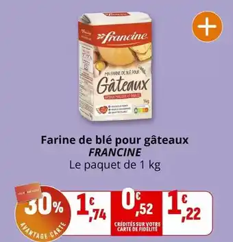 Actuellement en offre chez Coccinelle Supermarché : Francine - farine de blé pour gâteaux ✅ Valable du 11-02 au 22-02.